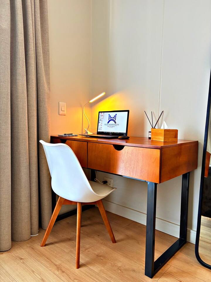 The Elite Skyline Suite is located in the heart of Waterfall City, one of Johannesburg’s most prestigious and fast-growing urban nodes. Ellipse Waterfall sits within a secure, master-planned precinct known for its modern architecture, corporate energy, and lifestyle convenience. The area blends business and leisure seamlessly, making it ideal for executives, consultants, and discerning travelers. Guests are surrounded by top-tier amenities including Mall of Africa (one of the largest malls in the Southern Hemisphere), world-class restaurants, cafés, gyms, and green spaces. Major business hubs such as Waterfall City, Midrand, and Sandton are easily accessible, while the area remains quiet, polished, and secure. The vibe is upscale, professional and calm, perfect for guests who value comfort, convenience, and a premium urban experience without the chaos of the inner city.