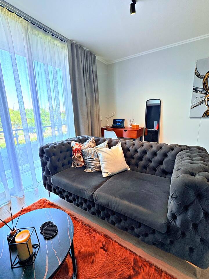 Stylish first-floor apartment at Ellipse Waterfall City offering the perfect blend of comfort and convenience. Enjoy a private balcony with views toward Mall of Africa, modern interiors, and a sleek open-plan layout designed for business travelers and city explorers. Located minutes from Mall of Africa, top restaurants, and major business hubs, this elegant stay delivers effortless luxury in one of Midrand’s most sought-after locations.
