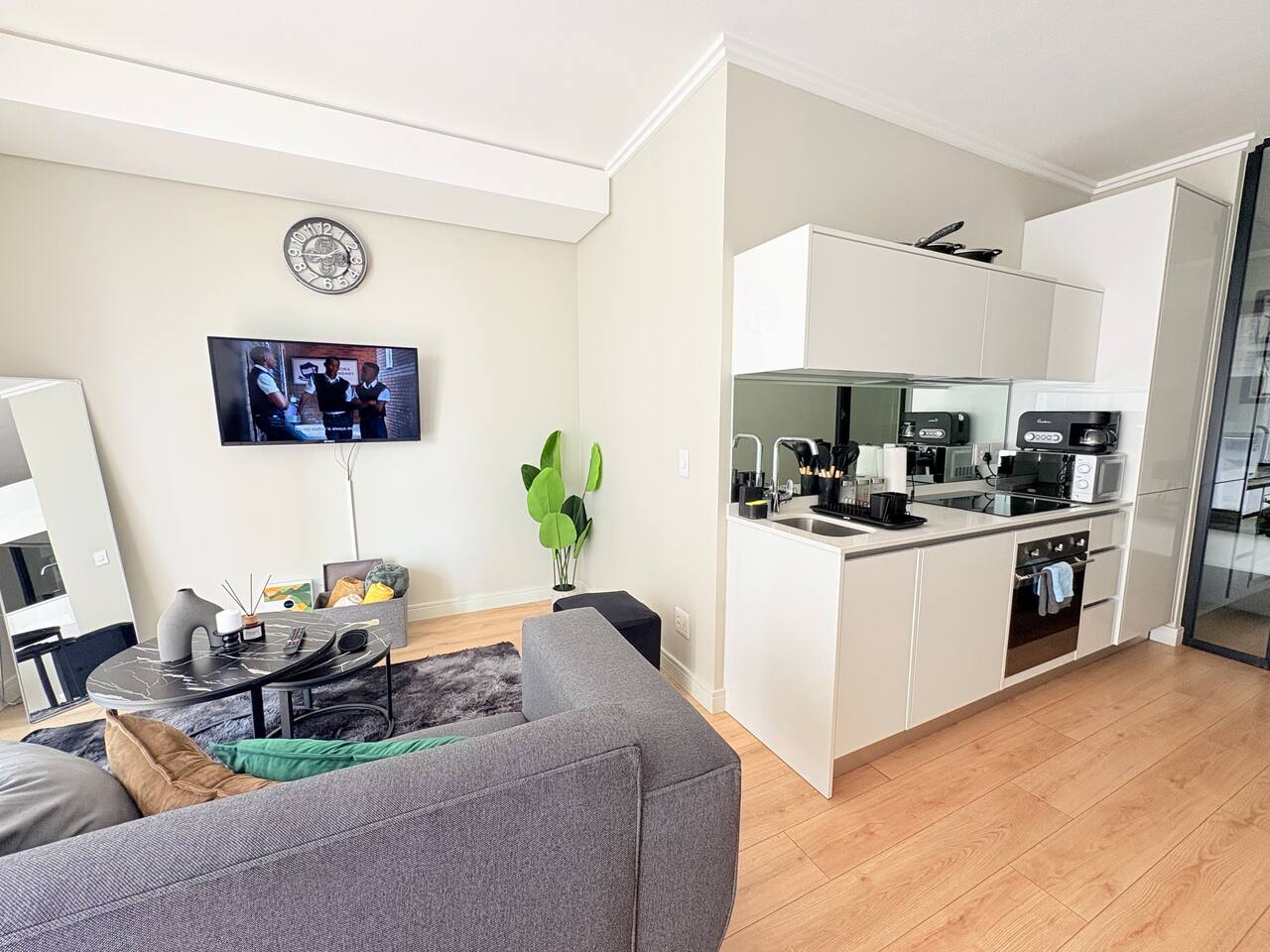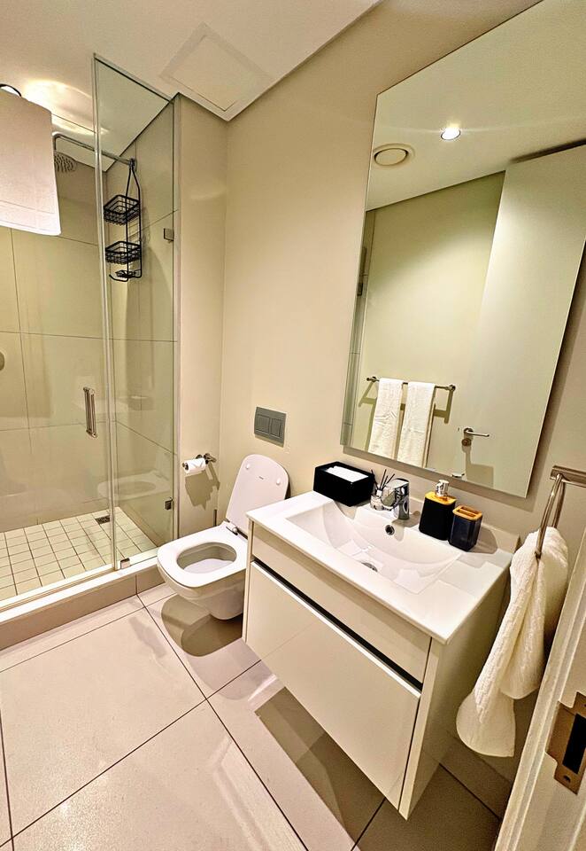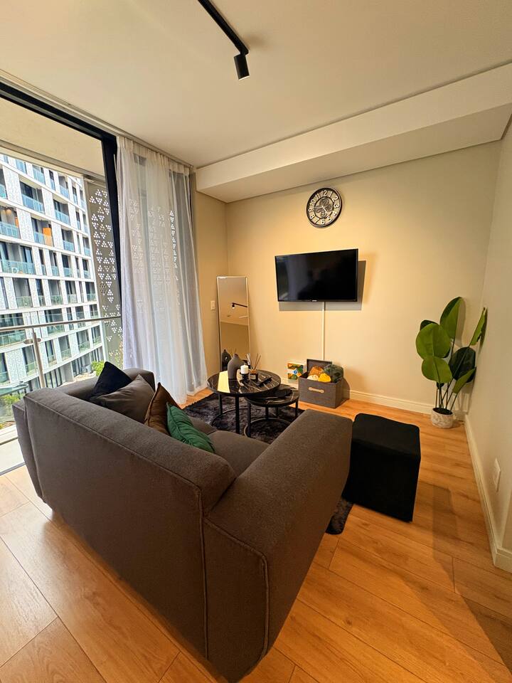 The Elite Skyline Suite is located in the heart of Waterfall City, one of Johannesburg’s most prestigious and fast-growing urban nodes. Ellipse Waterfall sits within a secure, master-planned precinct known for its modern architecture, corporate energy, and lifestyle convenience. The area blends business and leisure seamlessly, making it ideal for executives, consultants, and discerning travelers. Guests are surrounded by top-tier amenities including Mall of Africa (one of the largest malls in the Southern Hemisphere), world-class restaurants, cafés, gyms, and green spaces. Major business hubs such as Waterfall City, Midrand, and Sandton are easily accessible, while the area remains quiet, polished, and secure. The vibe is upscale, professional and calm, perfect for guests who value comfort, convenience, and a premium urban experience without the chaos of the inner city.